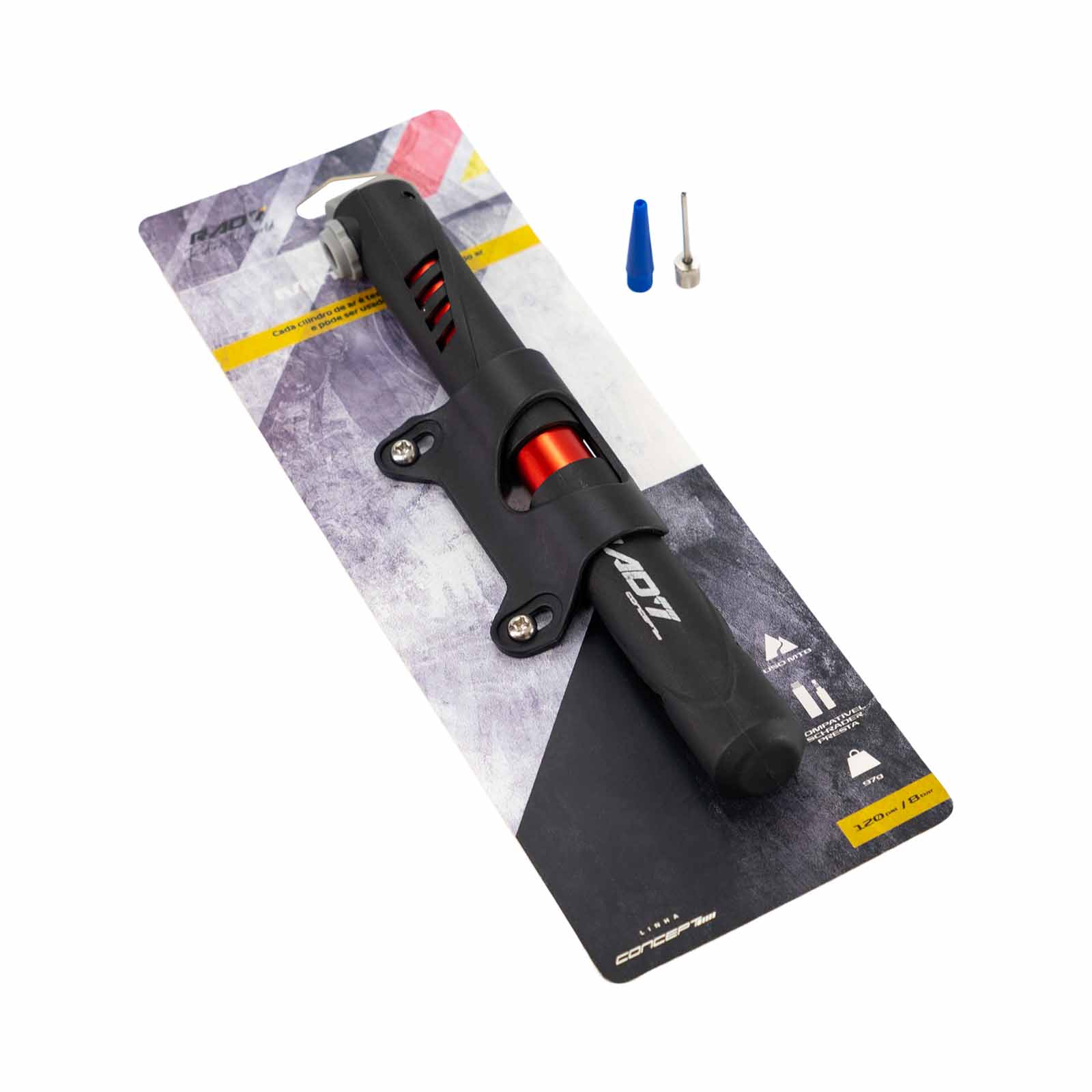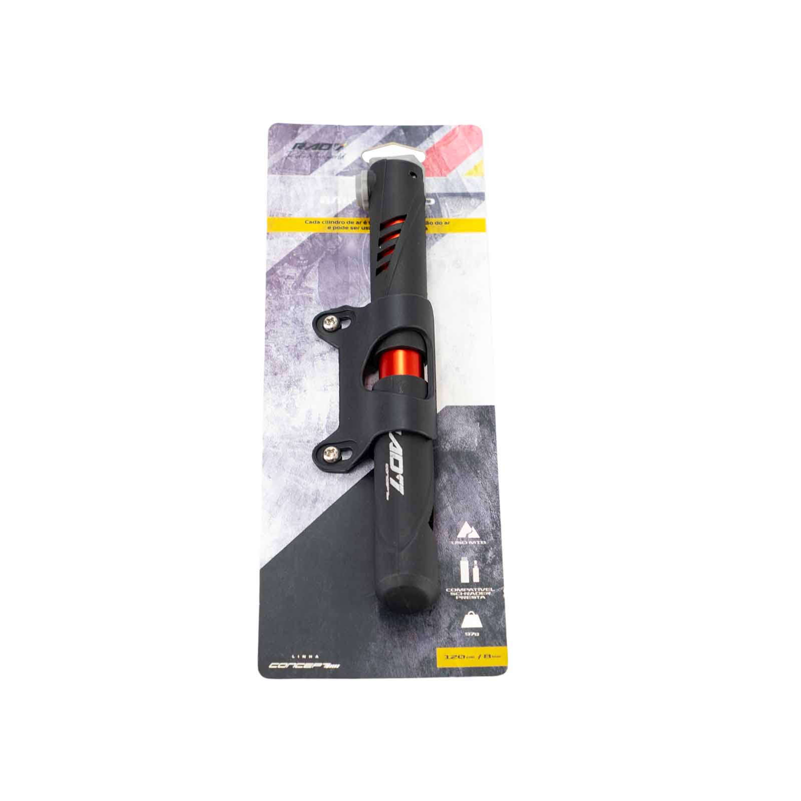 Bomba de Ar Mini Portátil com Suporte Quadro Preta e Laranja Rad7 Concept