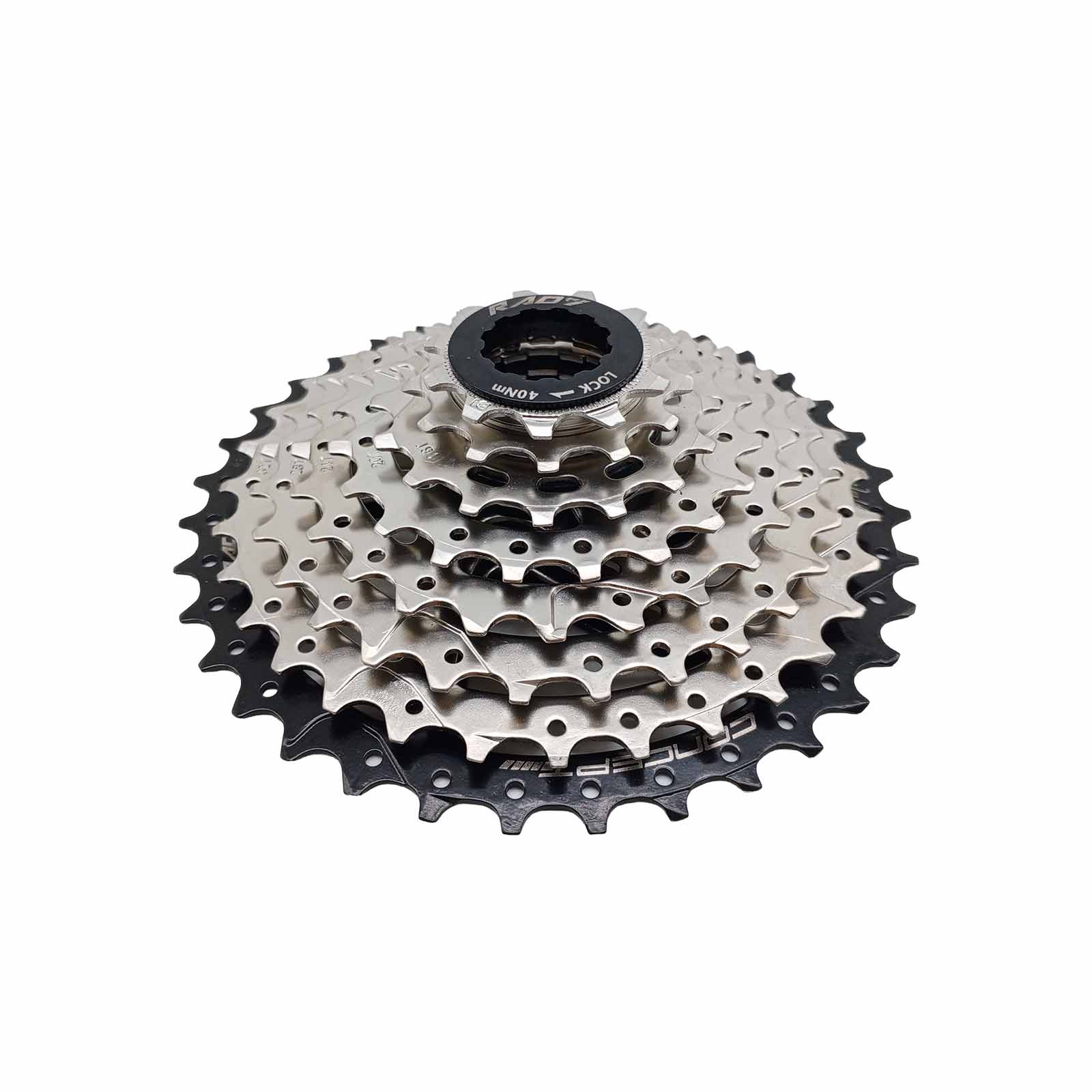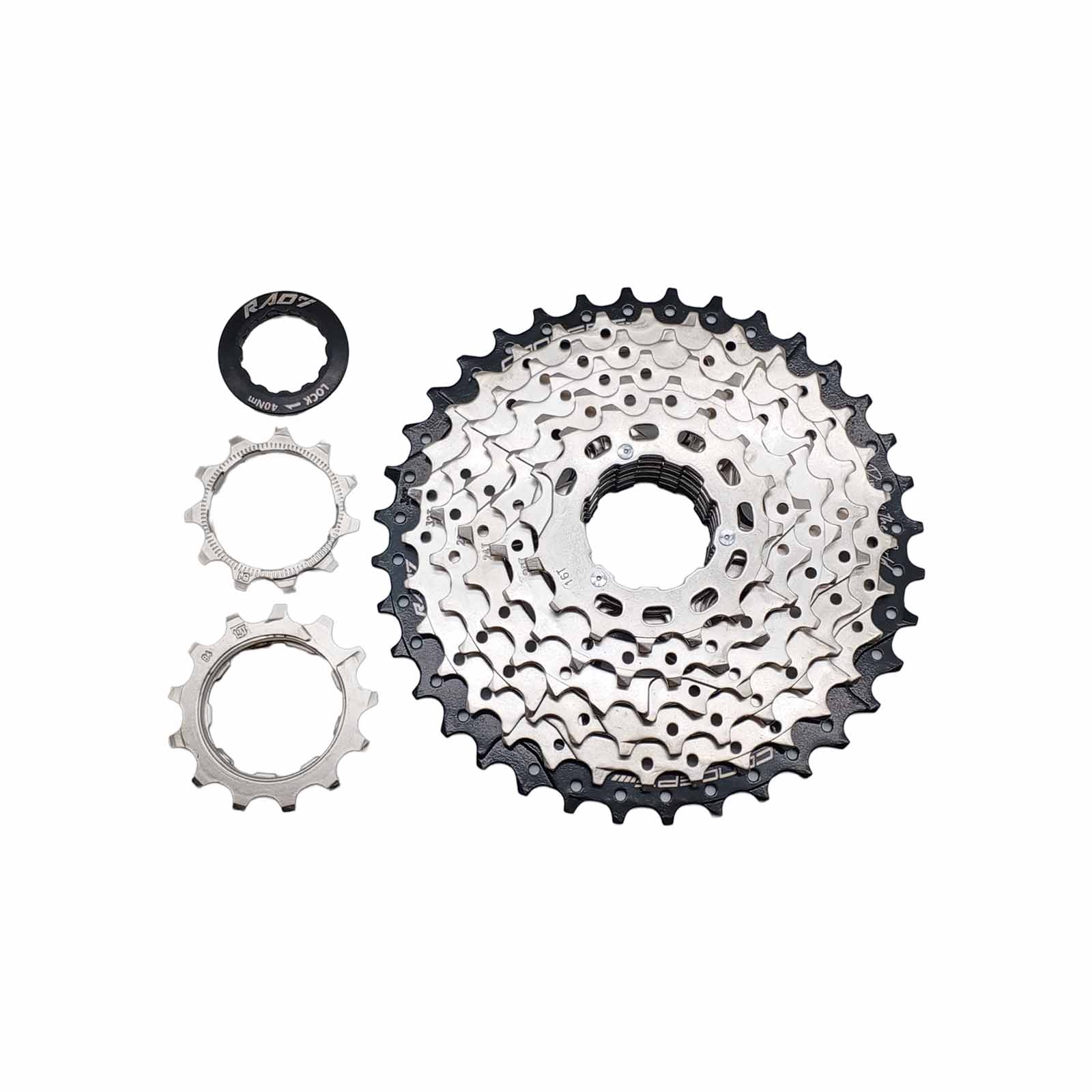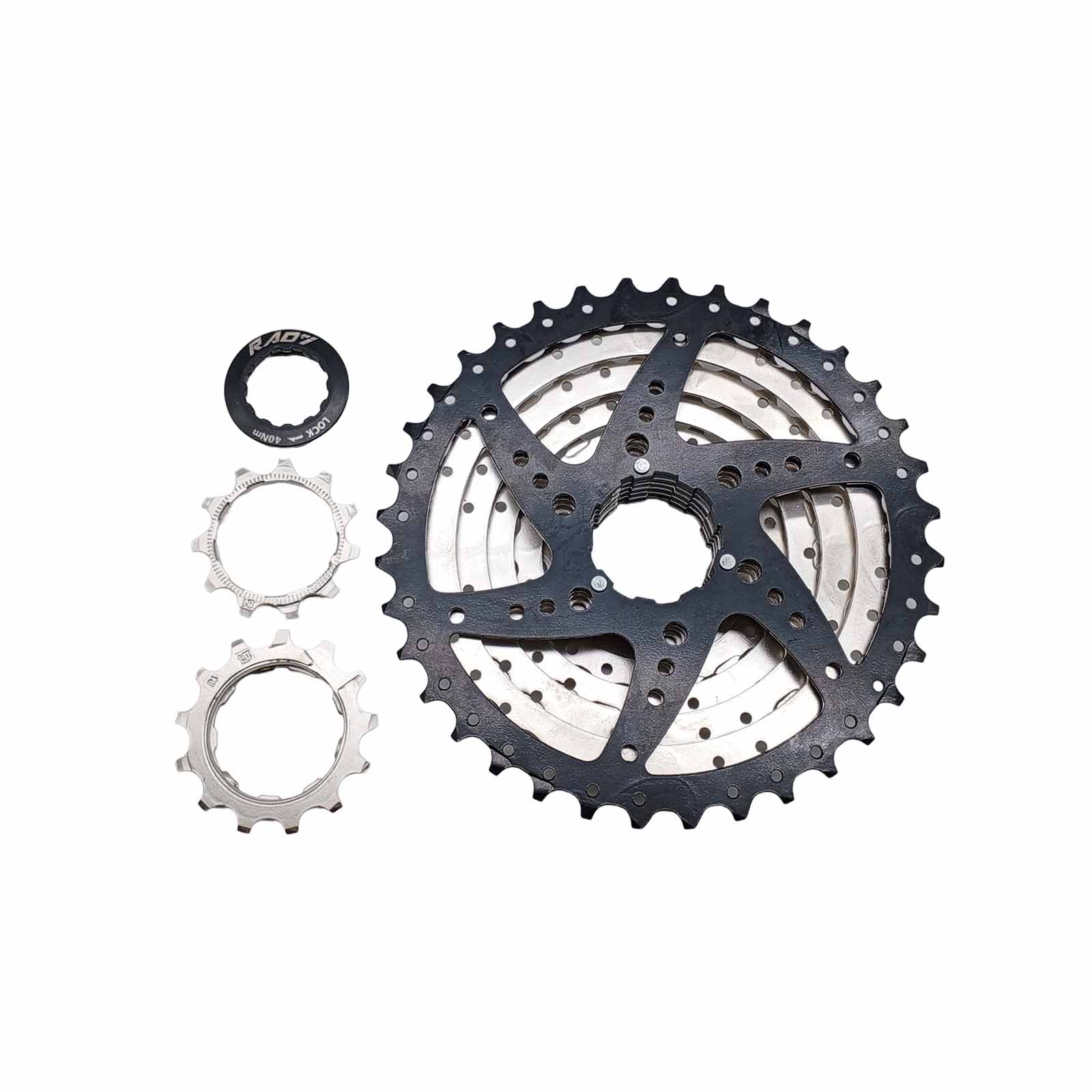 Cassete 8v 11-36D Index Niquelado com última Coroa Preta e Aranha em Alumínio Rad7 Concept